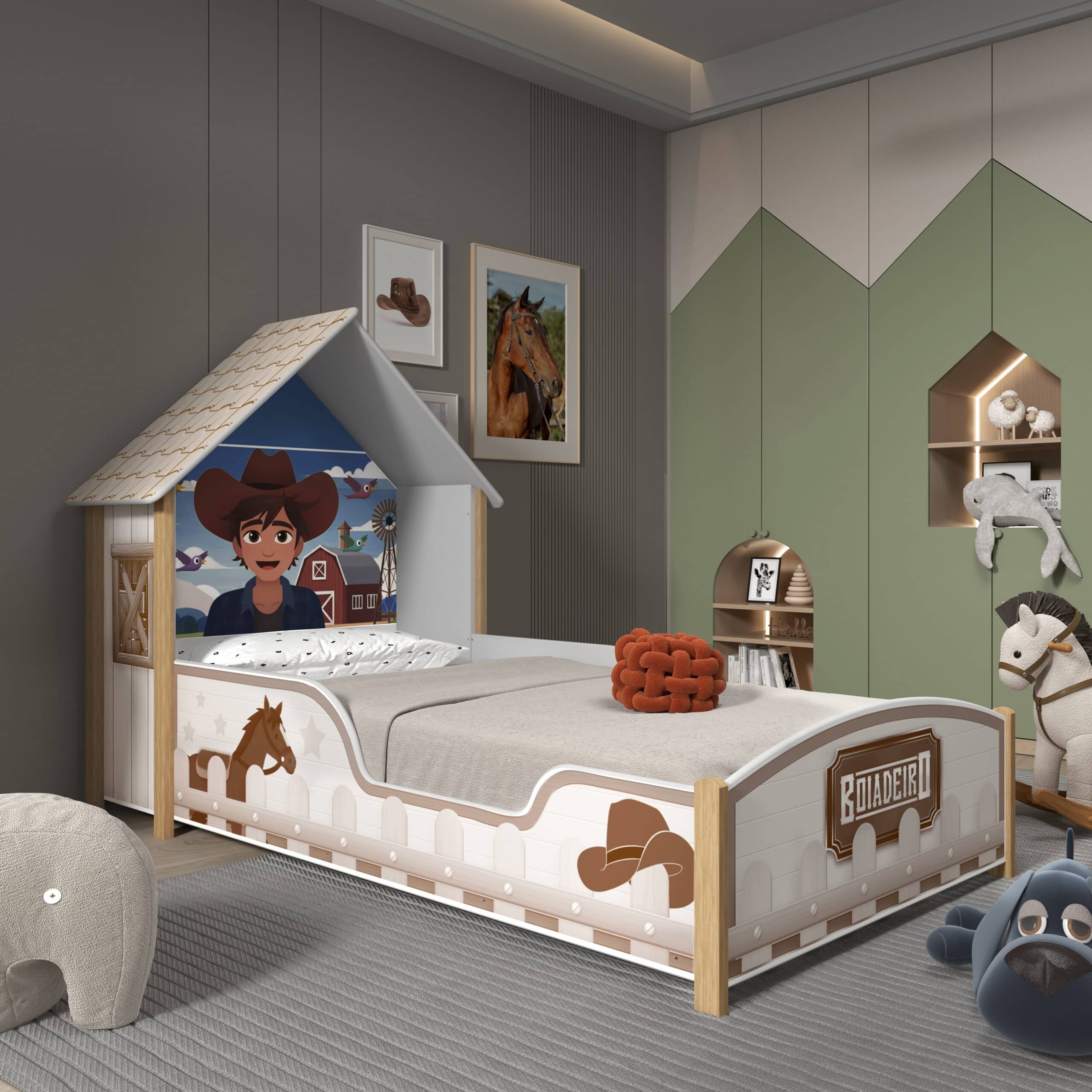 A Cama Infantil Boiadeiro foi criada para transformar o quarto das crianças em um ambiente cheio de aventura, conforto e imaginação. Inspirada no universo do campo e na vida dos pequenos cowboys, ela desperta o espírito livre e curioso das crianças, tornando a hora de dormir um momento divertido e cheio de histórias para sonhar.