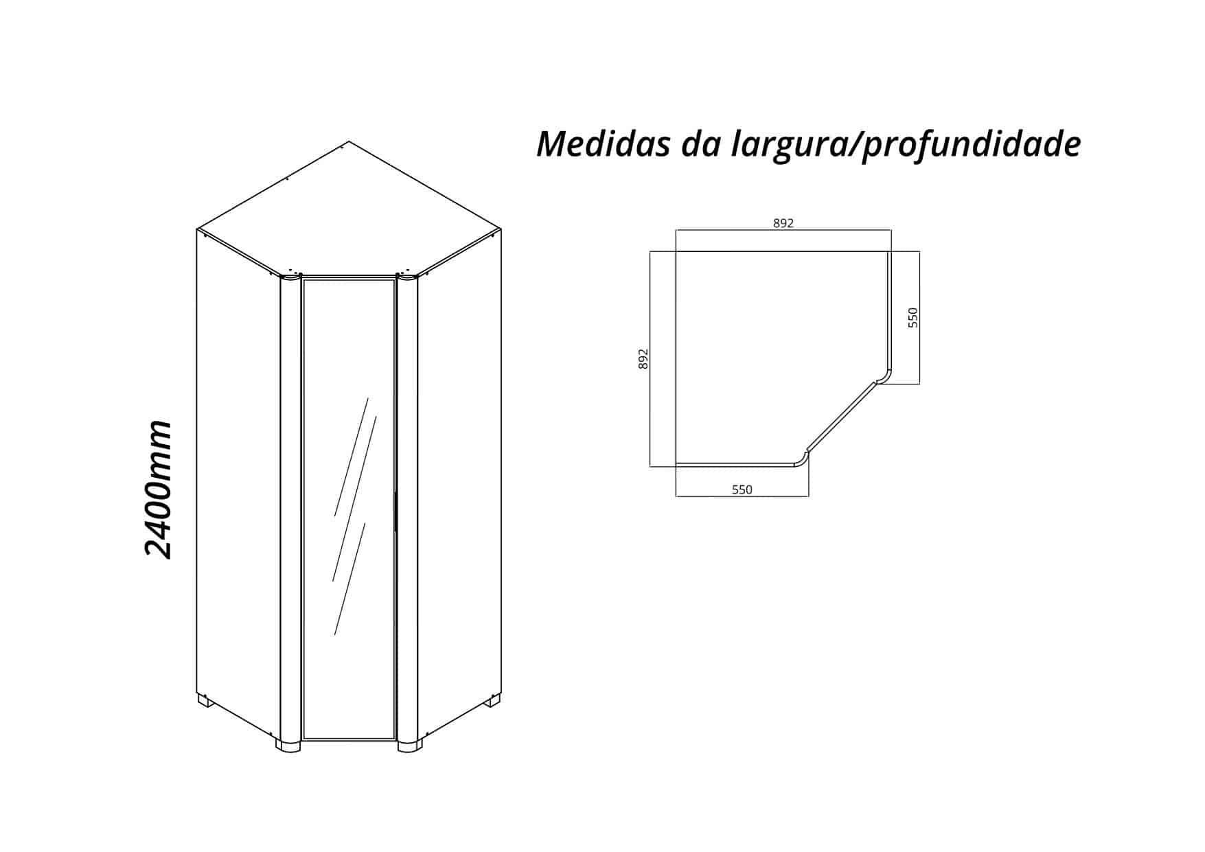 • Cabideiro em L que otimiza o espaço interno e facilita a organização das roupas.