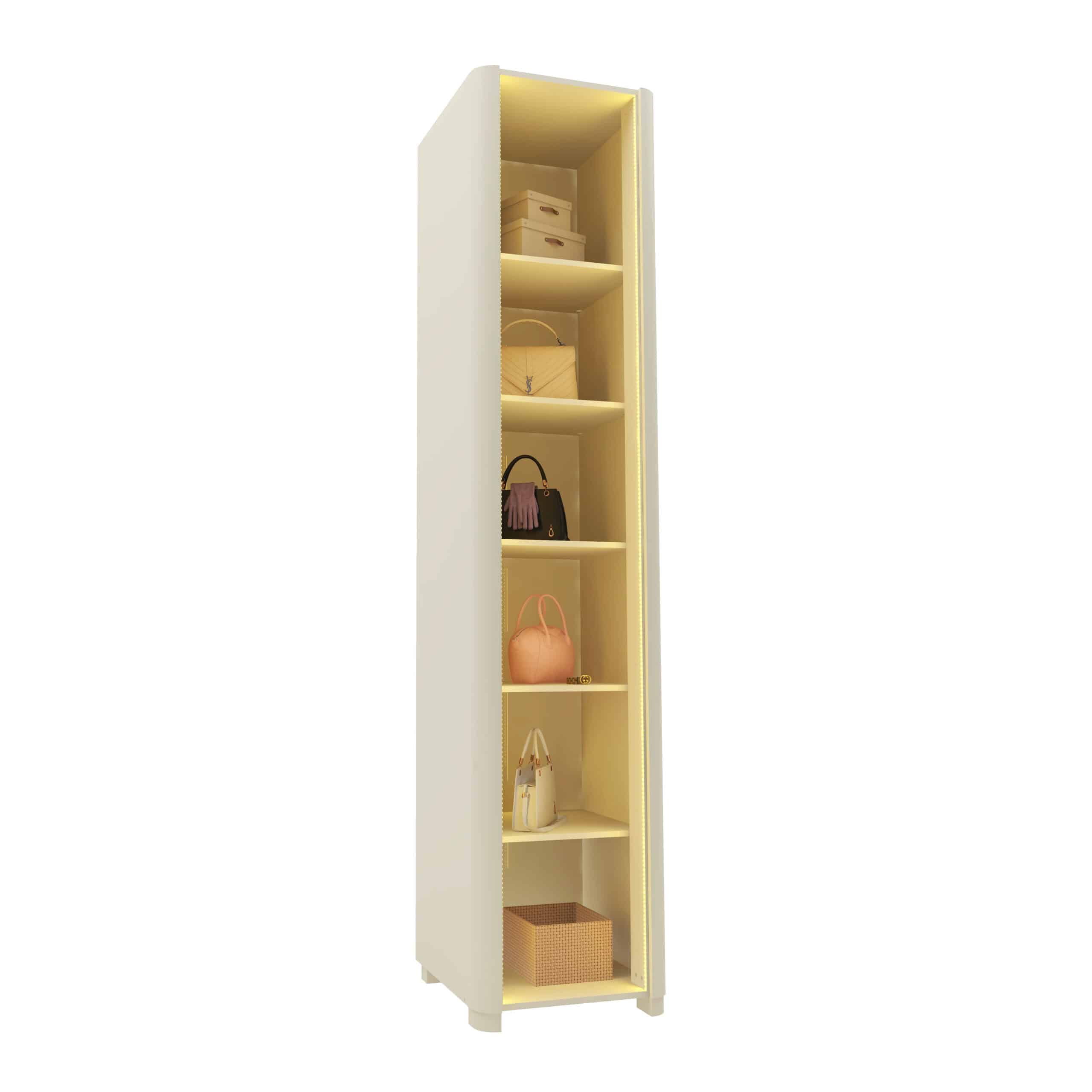 O Roupeiro Innova 1P foi desenvolvido para quem busca sofisticação, organização e um design contemporâneo em um móvel compacto e versátil. Com formato vertical e prateleiras bem distribuídas, ele é perfeito para organizar e expor bolsas e acessórios de forma elegante e funcional.
