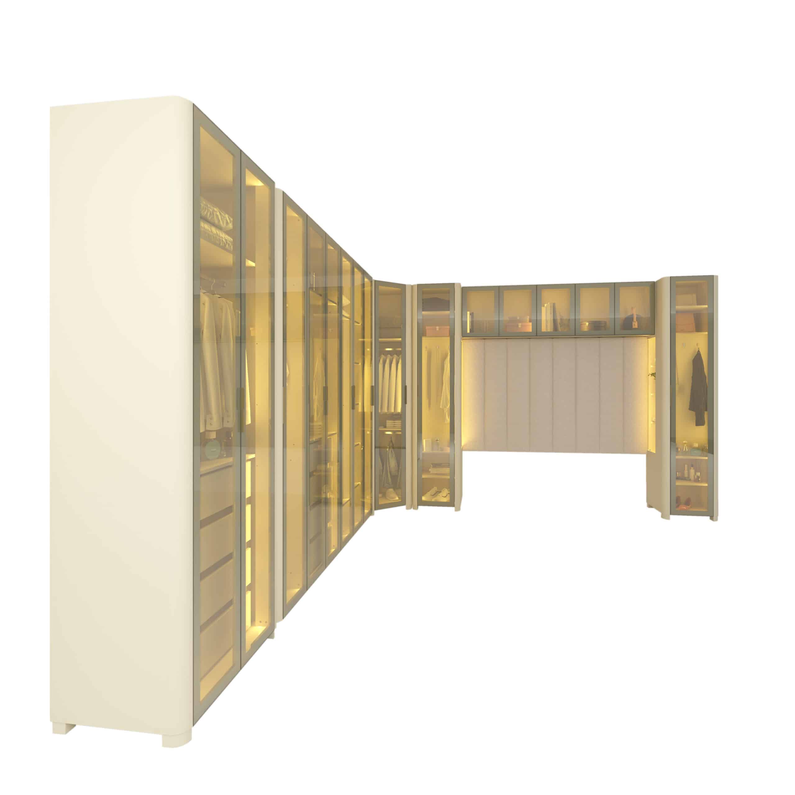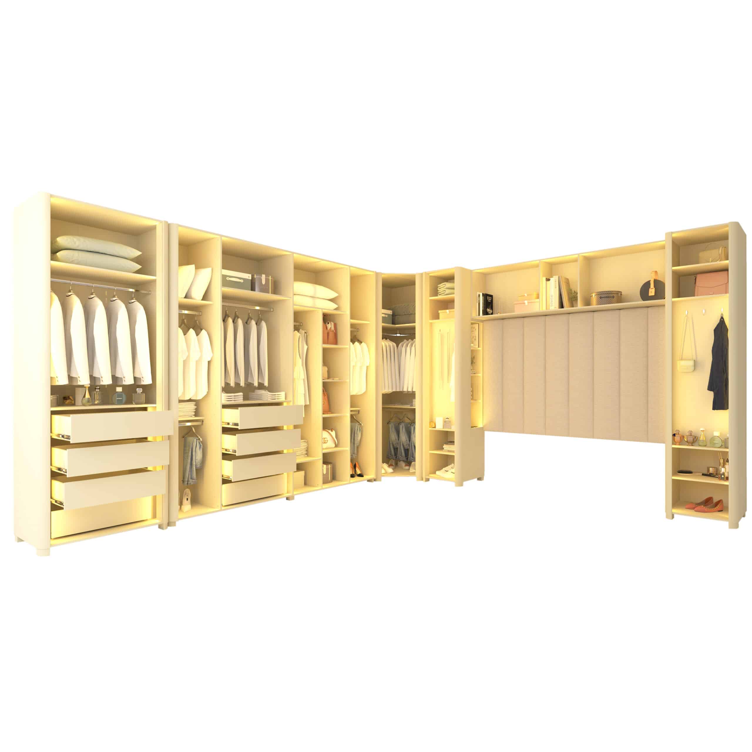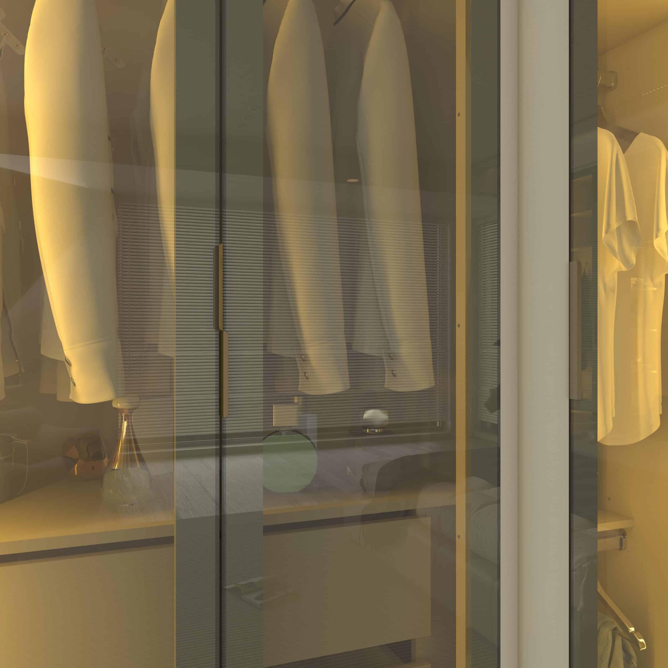 Com seu roupeiro de 6 portas, o ambiente ganha amplitude, imponência e um design contínuo que valoriza cada detalhe.