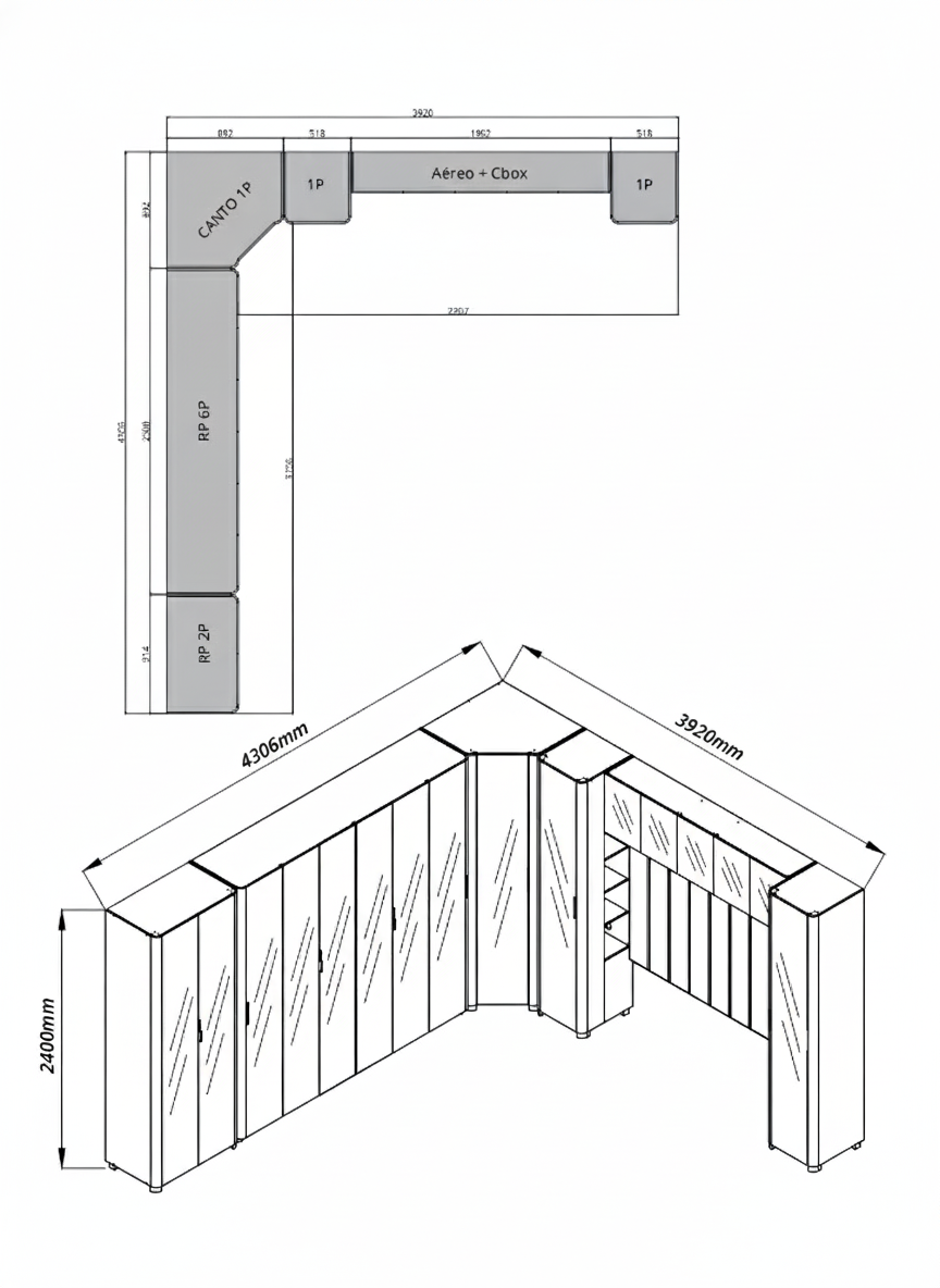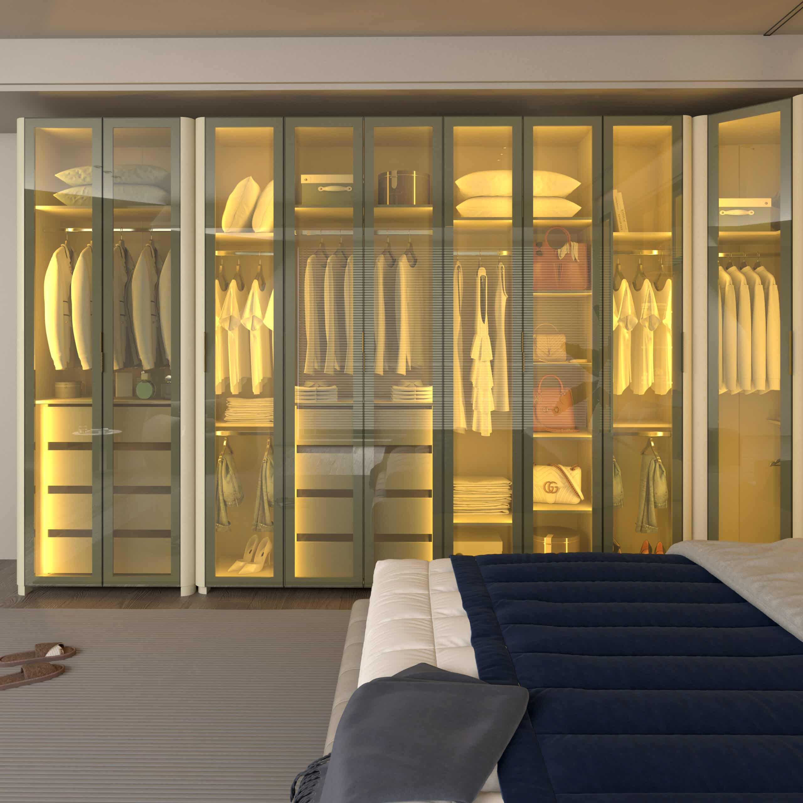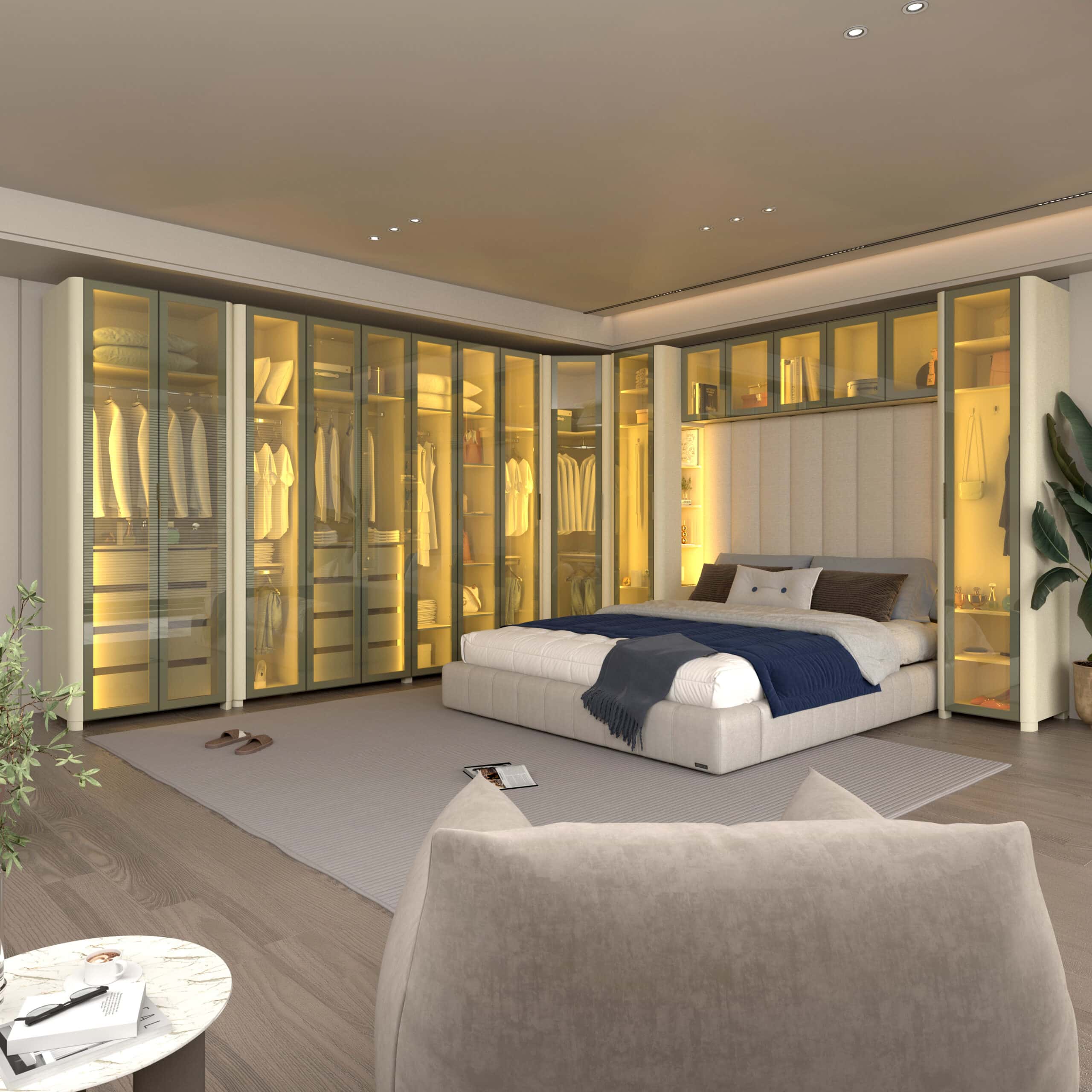 Com seu roupeiro de 6 portas, o ambiente ganha amplitude, imponência e um design contínuo que valoriza cada detalhe.