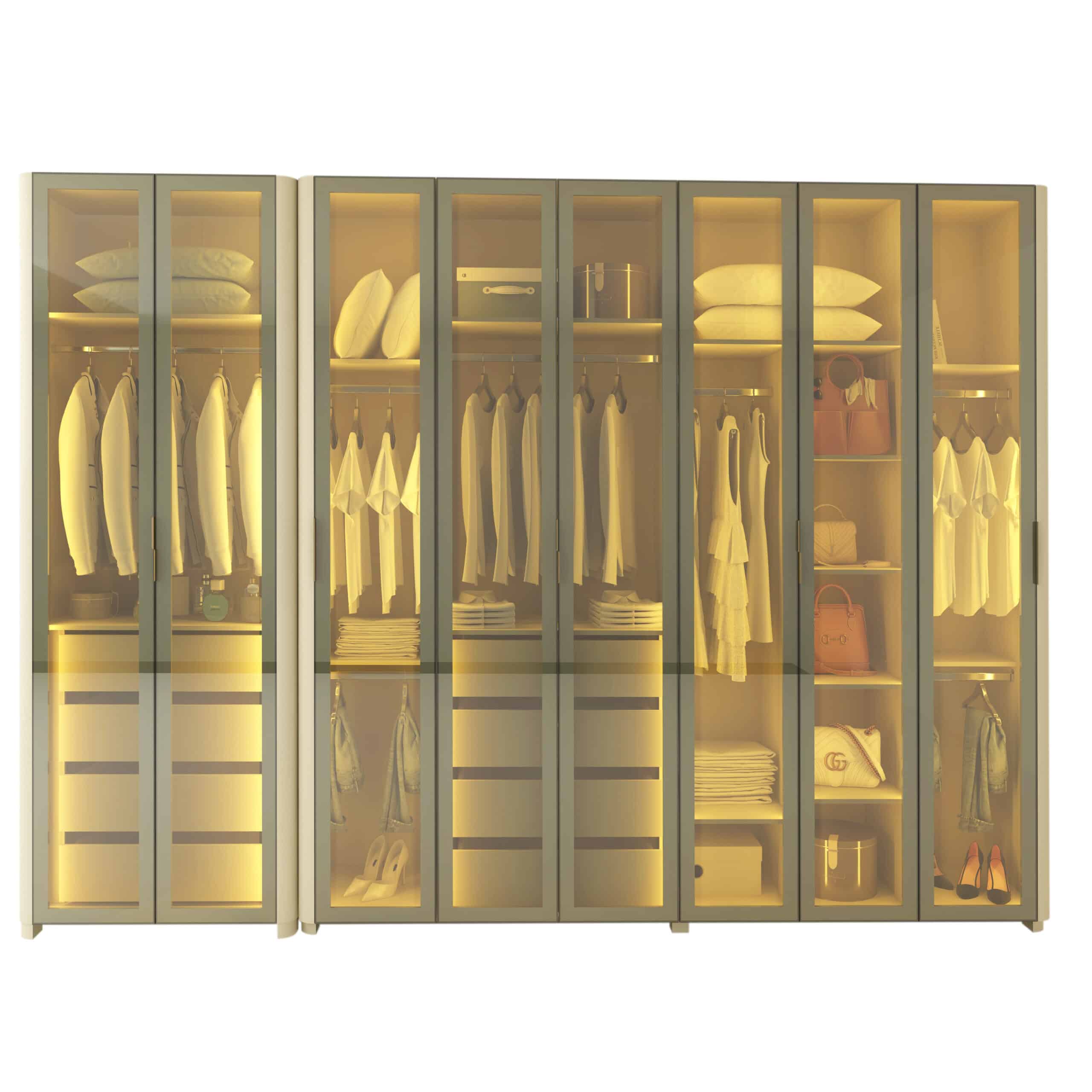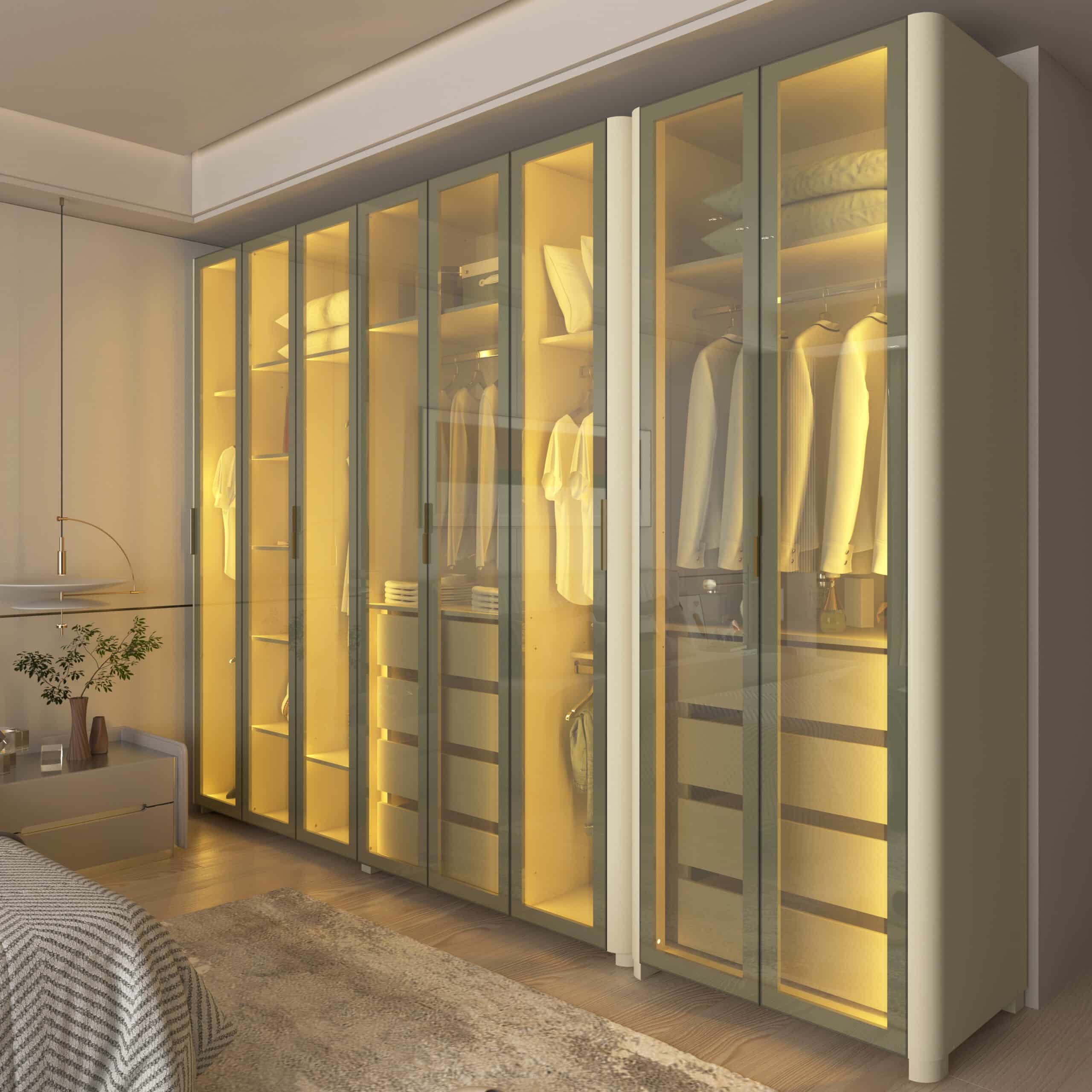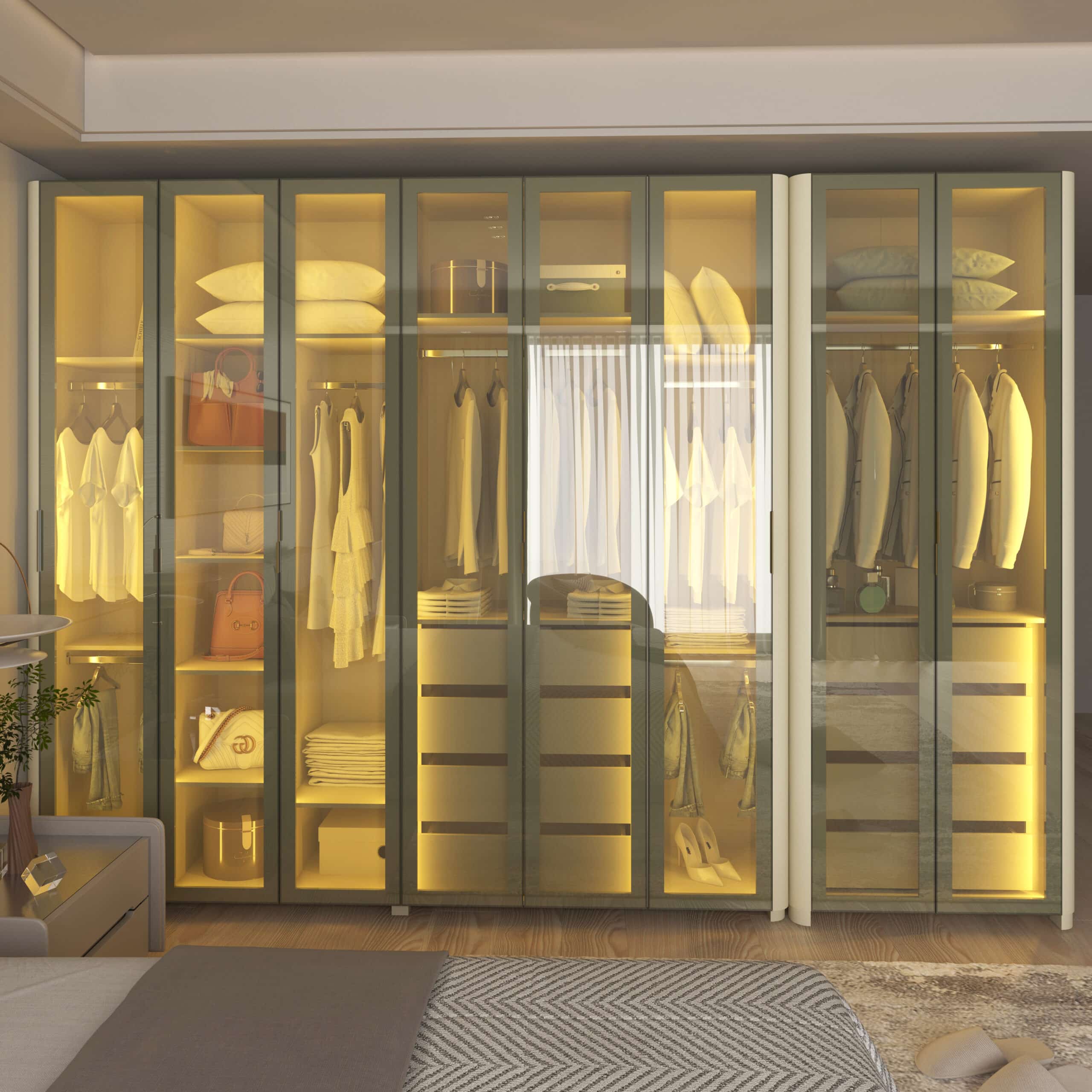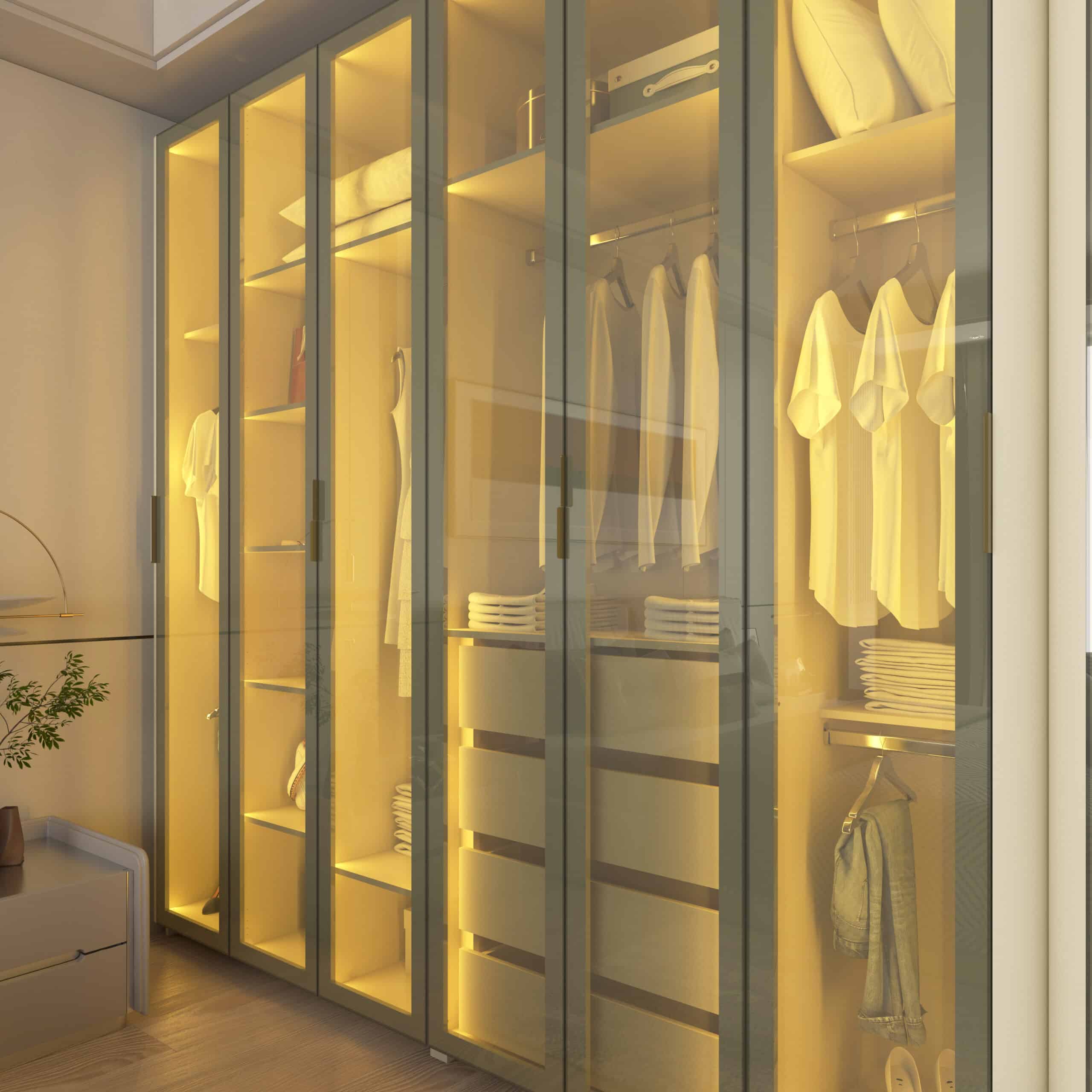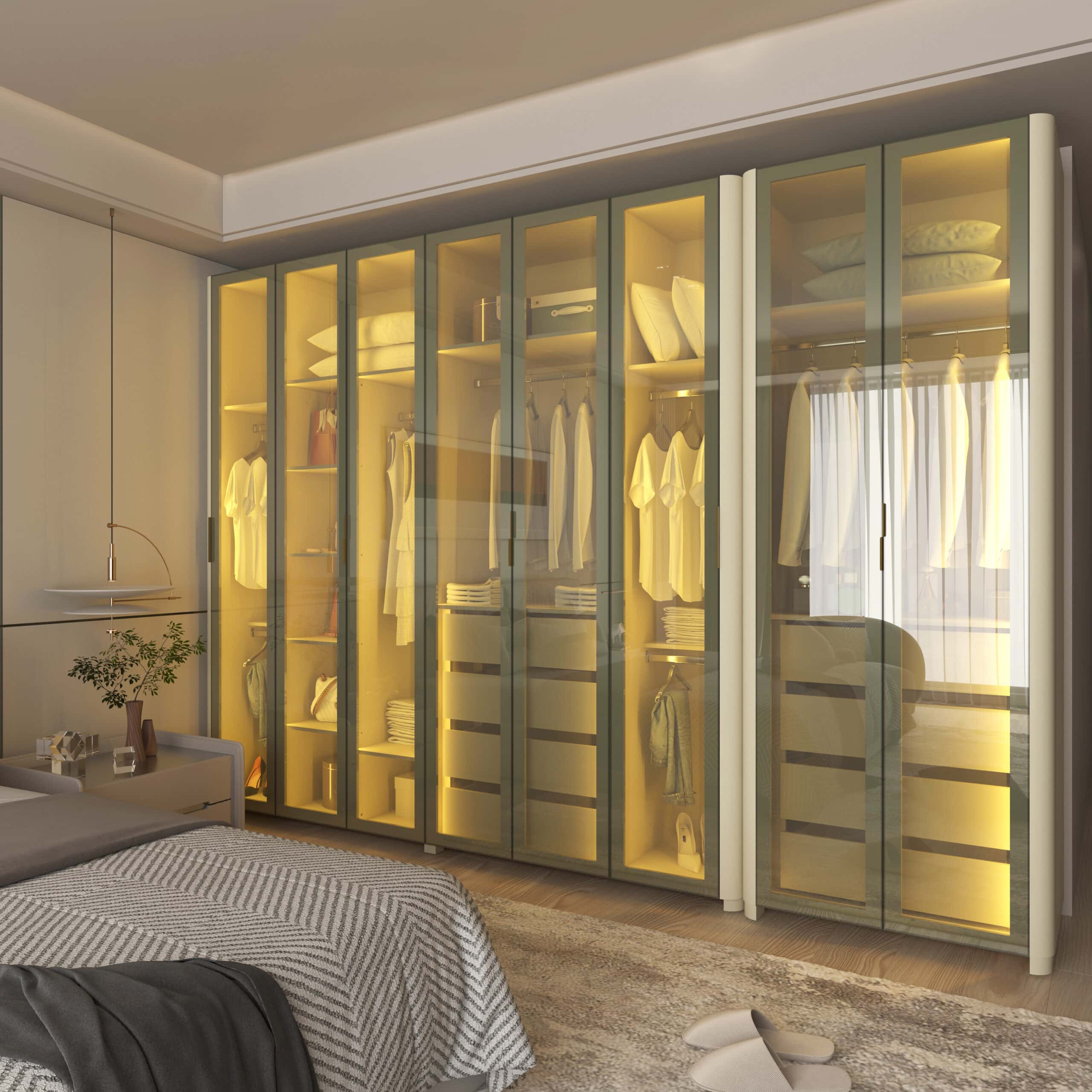 Com design elegante, iluminação envolvente e portas em vidro reflecta, o MODULADO INNOVA transforma o dormitório em um espaço moderno e acolhedor.