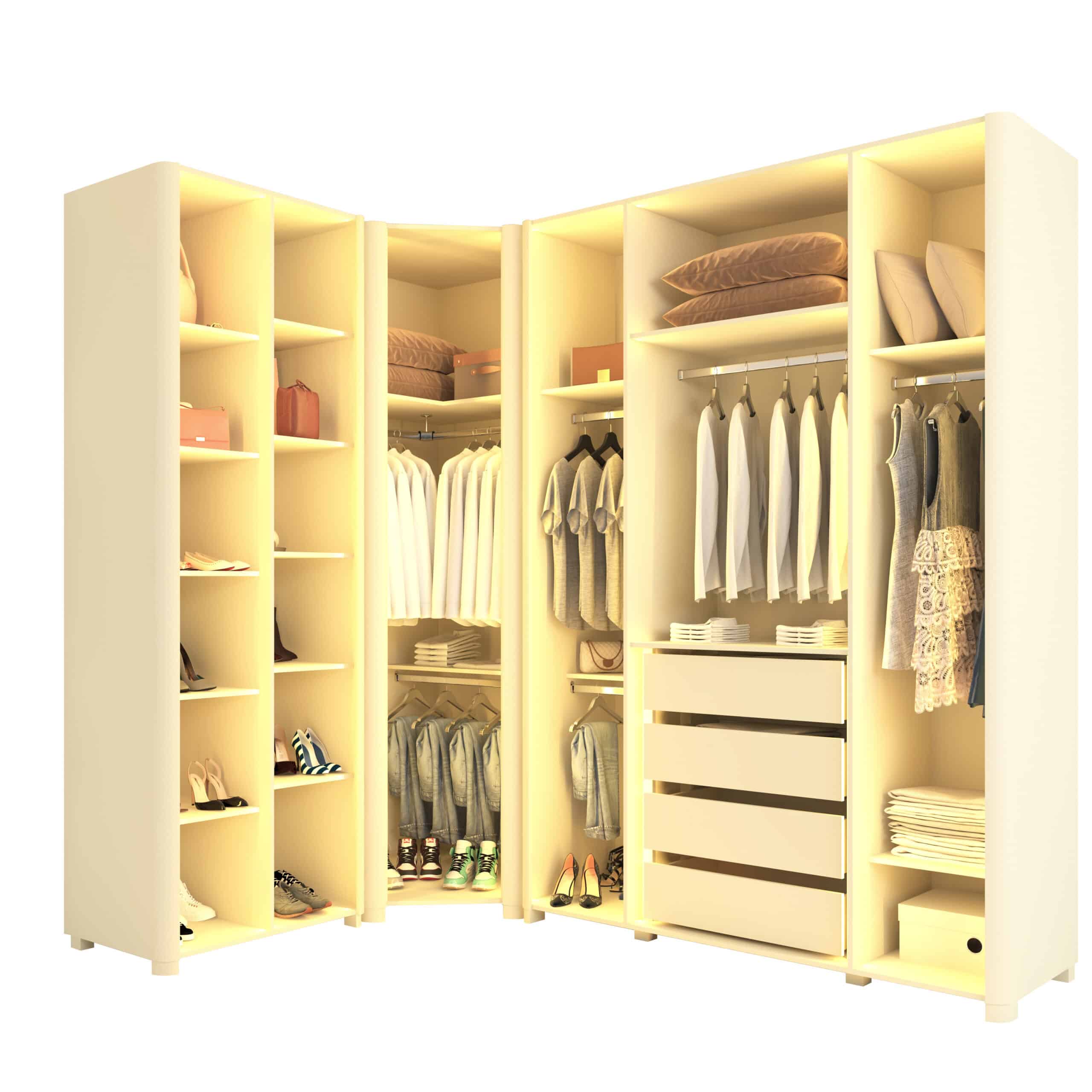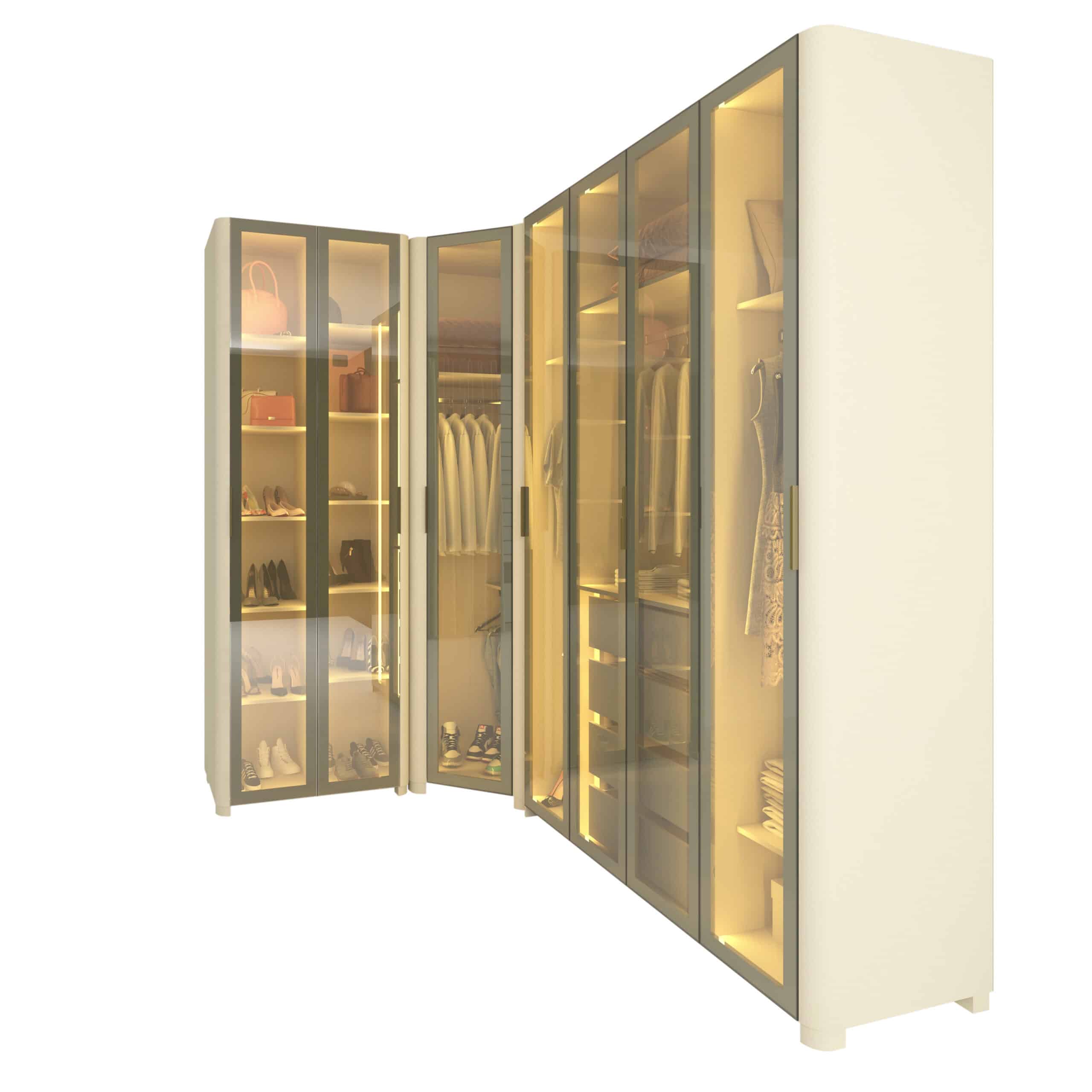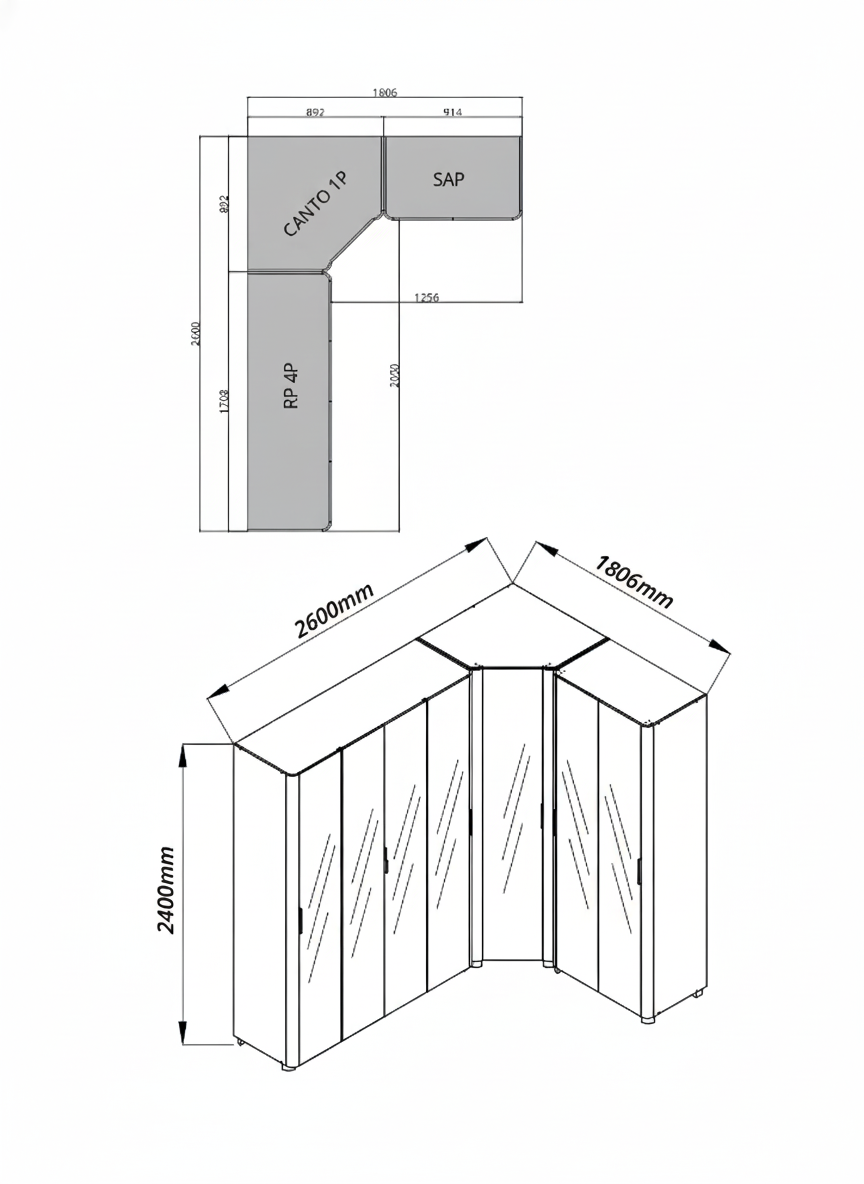 Composto por Roupeiro INNOVA 4 portas, Canto INNOVA e Sapateira INNOVA 2 portas, este conjunto foi desenvolvido para oferecer elegância e praticidade em um layout harmonioso e imponente.