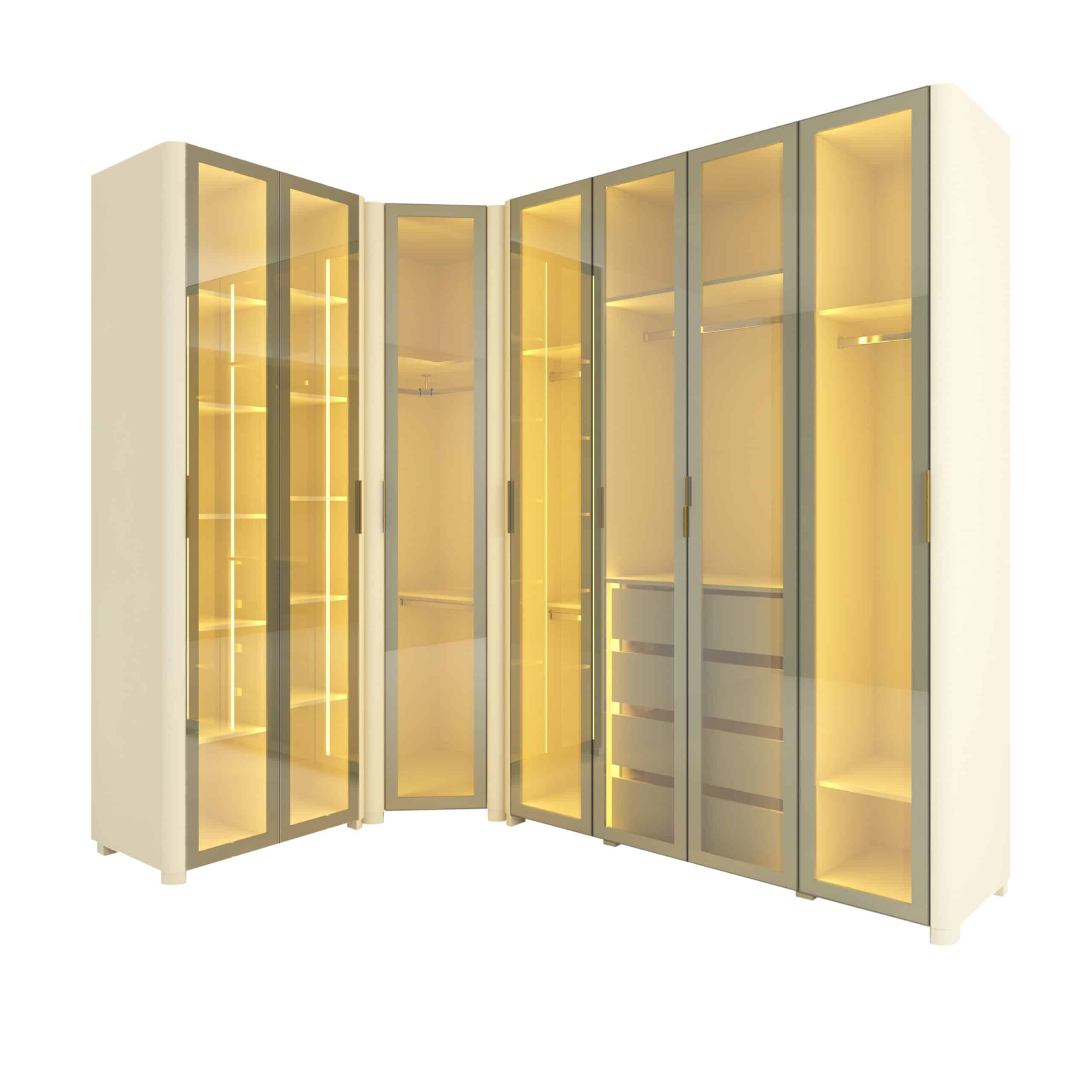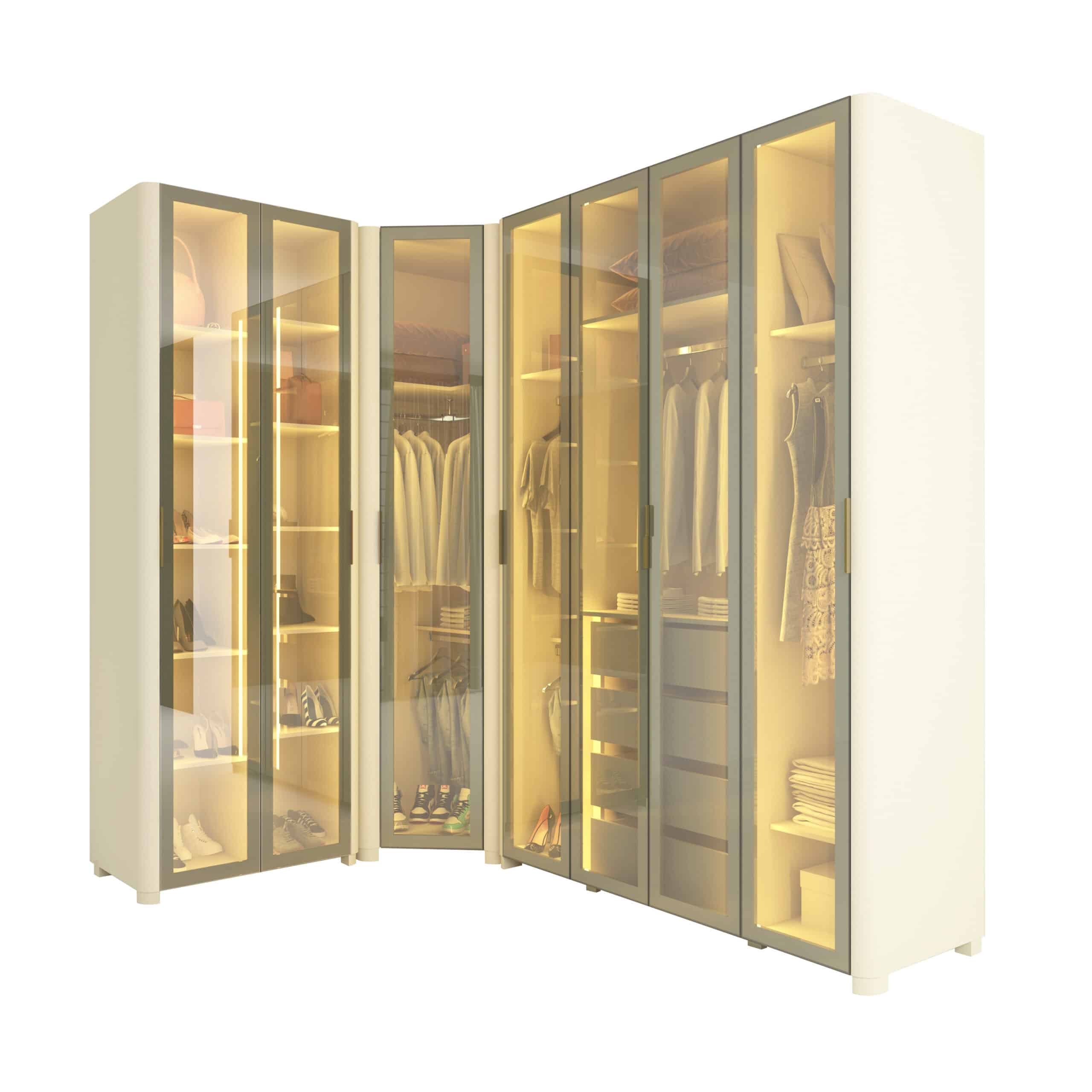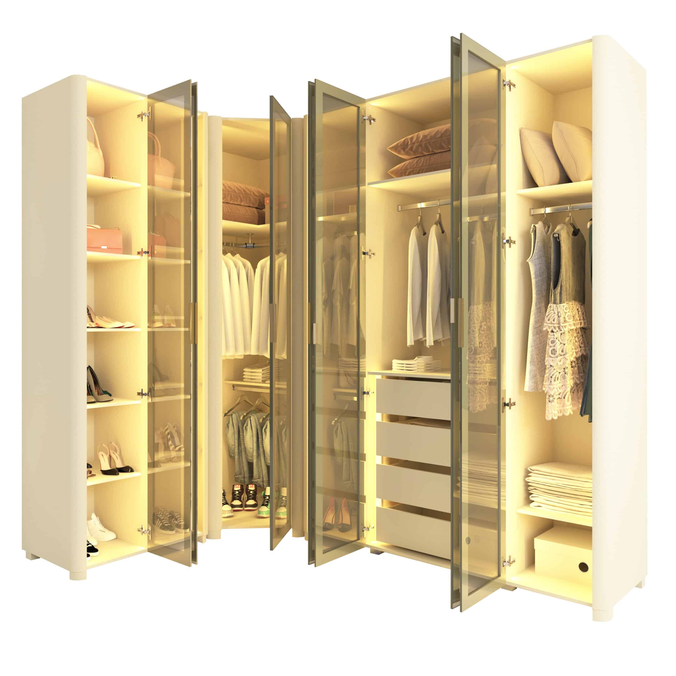 Composto por Roupeiro INNOVA 4 portas, Canto INNOVA e Sapateira INNOVA 2 portas, este conjunto foi desenvolvido para oferecer elegância e praticidade em um layout harmonioso e imponente.