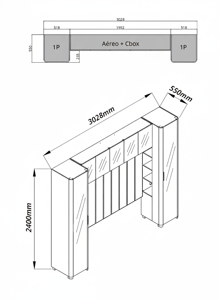 Composto por Roupeiro INNOVA 1 porta com nicho, Aéreo Concept e Cabeceira Concept, este conjunto cria um ambiente elegante e acolhedor, ideal para quem busca um quarto com estética contemporânea e funcionalidade inteligente.