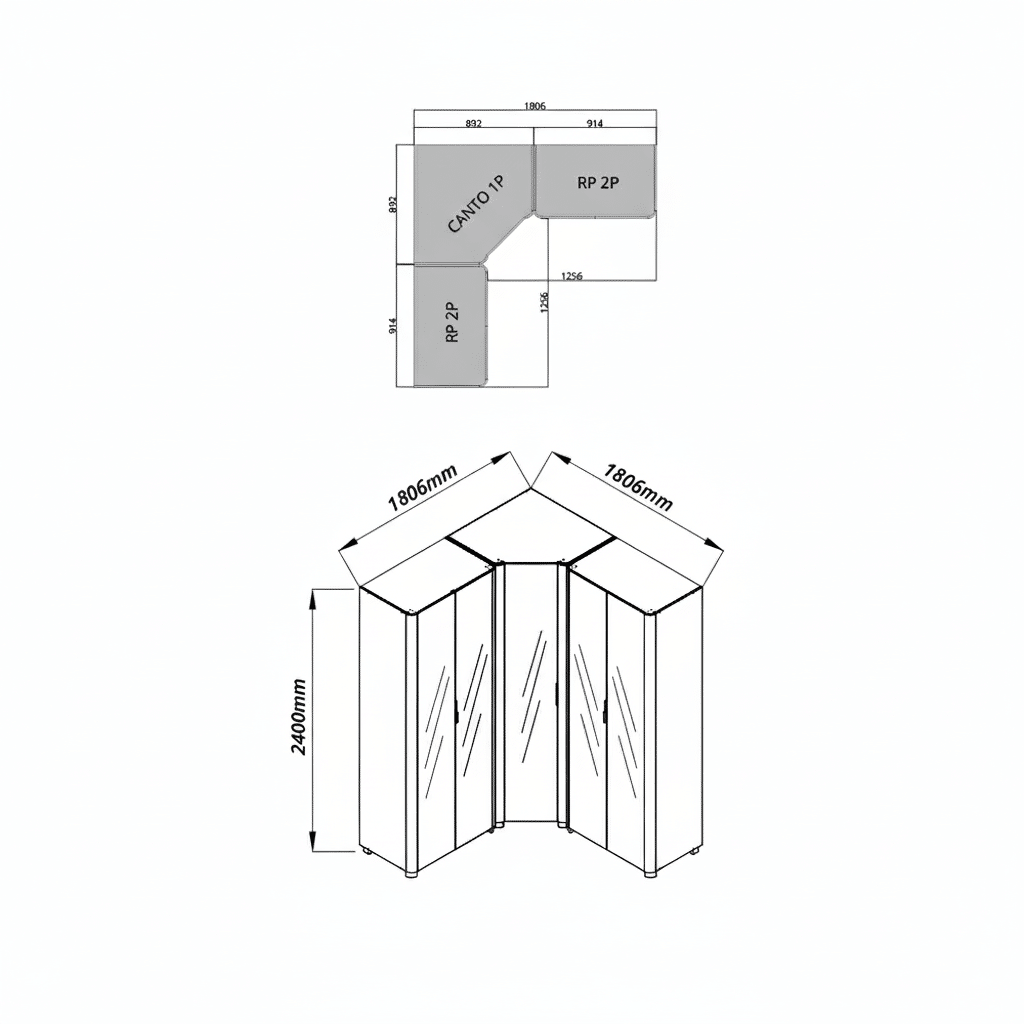 O design com cantos curvos e molduras em alumínio garante leveza visual e continuidade entre os módulos, elevando o padrão estético do ambiente.