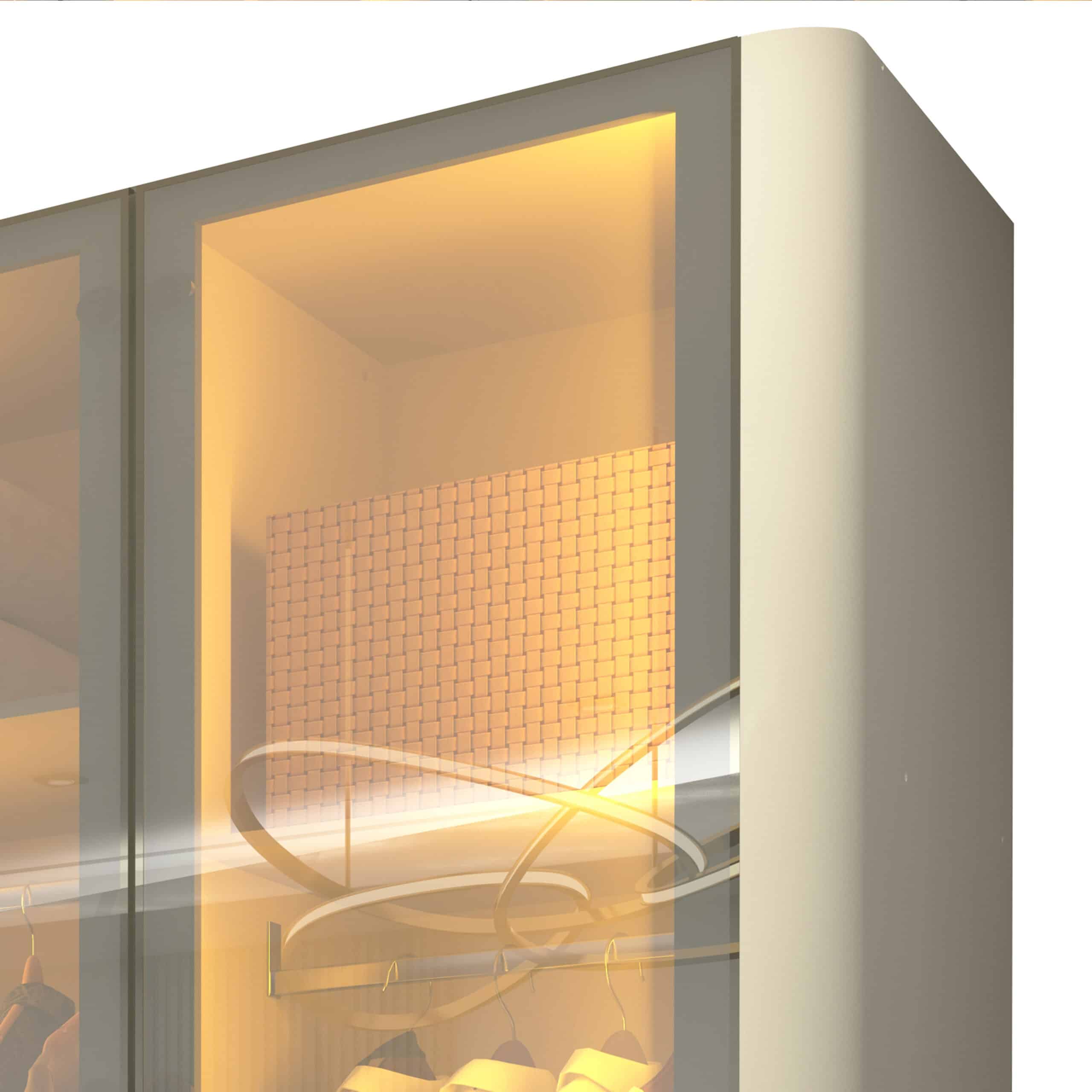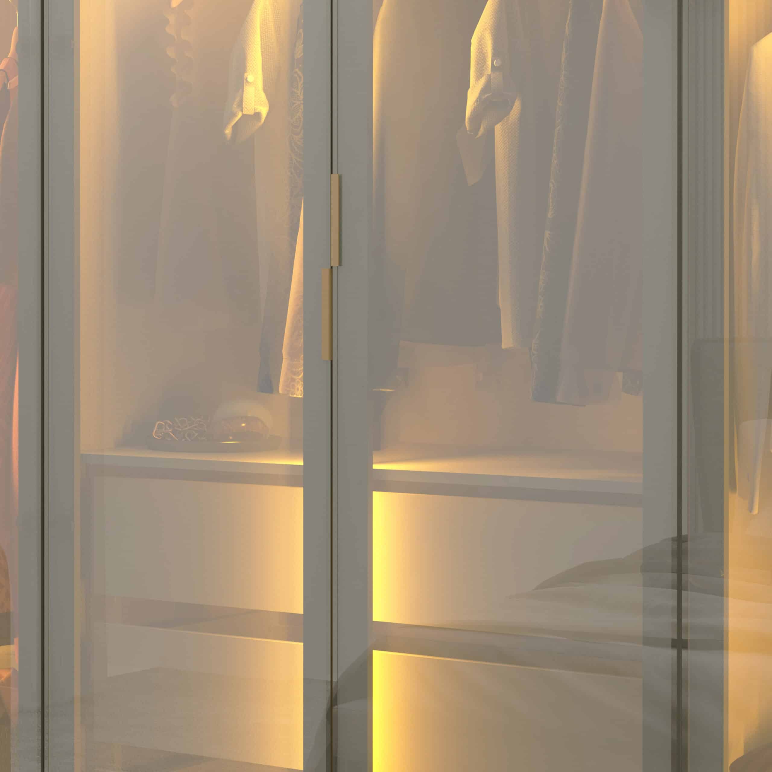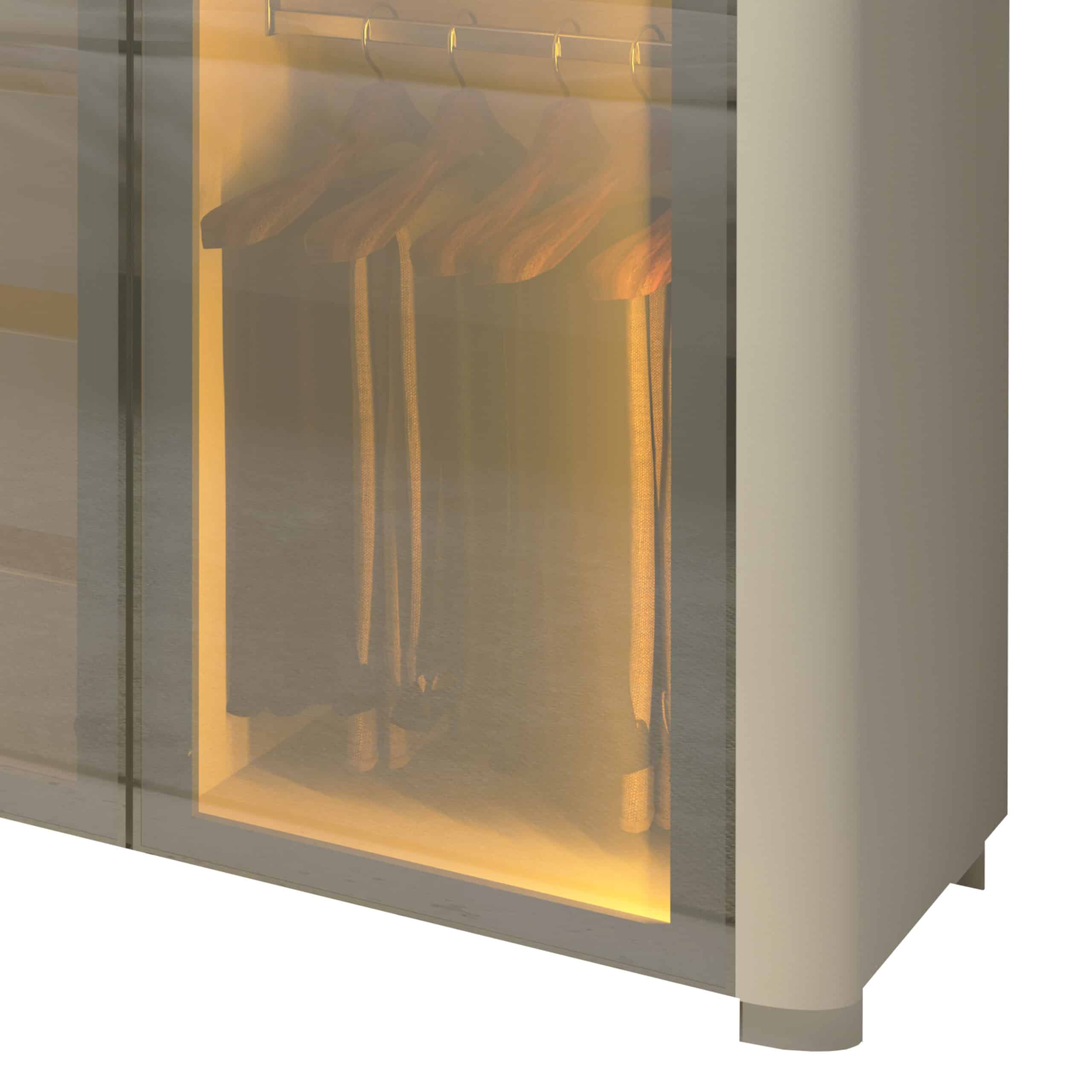 O Roupeiro Innova é um móvel moderno e elegante. Possui portas em vidro Reflecta, cantos curvos e luz LED em cor quente que se destacam em seu visual e trazem um tom de aconchego a decoração. Seu interior pensado para facilitar a organização, possui gavetas espaçosas com corrediças telescópicas, ampla quantidade de prateleiras e tubos cabideiros. Este é o roupeiro perfeito para transformar seu quarto.