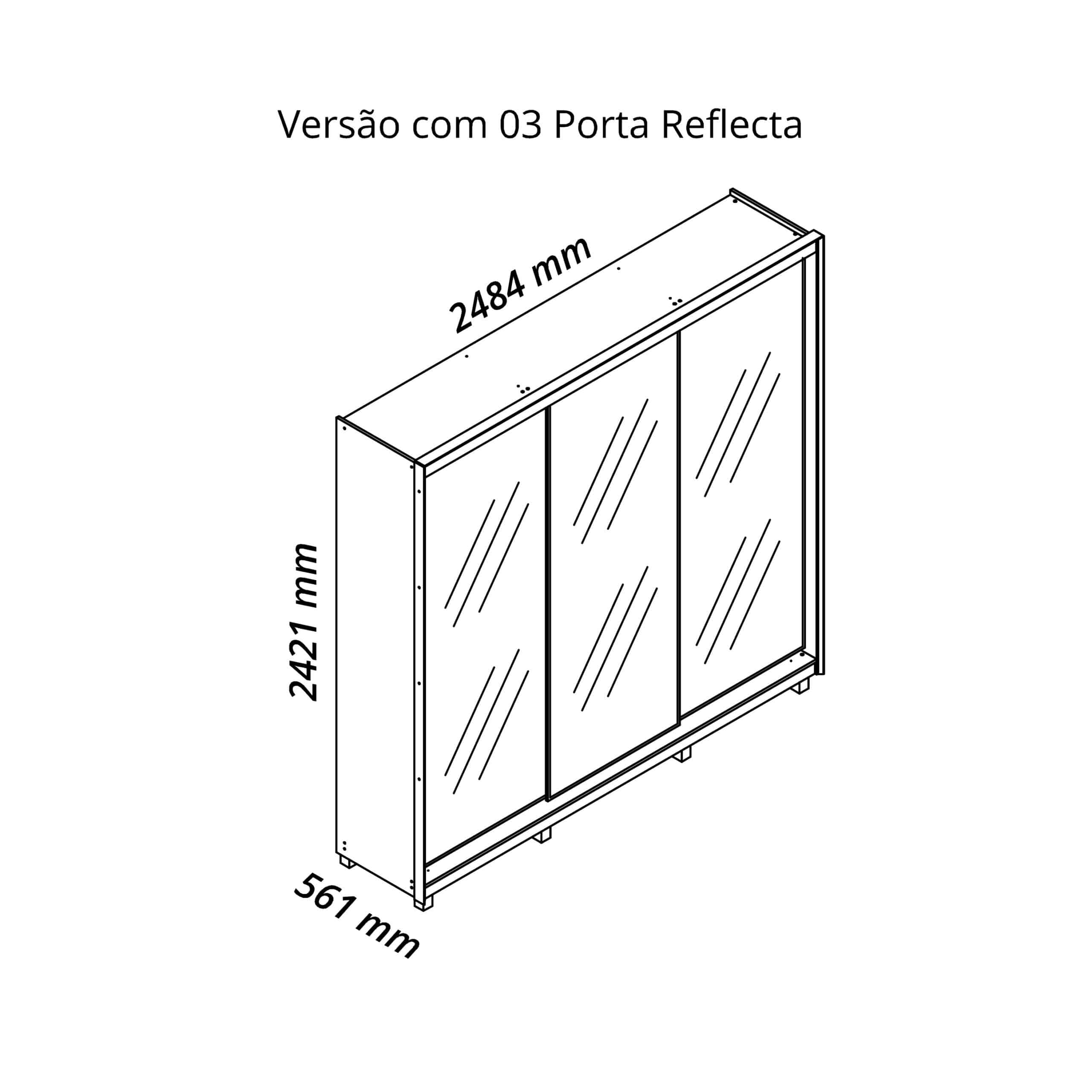 O Roupeiro Platinum 3P é a união perfeita entre inovação, design e funcionalidade. Com portas deslizantes em vidro reflecta, ele traz um toque moderno e sofisticado ao ambiente, além de seguir as principais tendências do mobiliário contemporâneo. O acabamento com requadro em alumínio e iluminação em LED de cor quente nas laterais e divisórias valoriza ainda mais o visual e facilita o uso no dia a dia. Produzido 100% em MDF, conta com seis gavetas com corrediças telescópicas e um interno funcional com divisão ele/ela na elegante cor Off White. Também está disponível com opção de portas em MDF, com kit espelho opcional. Uma solução completa para quem busca elegância, inovação e praticidade no quarto.